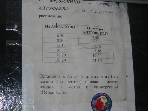 Расписание автобуса в Аксаково, лето 2003